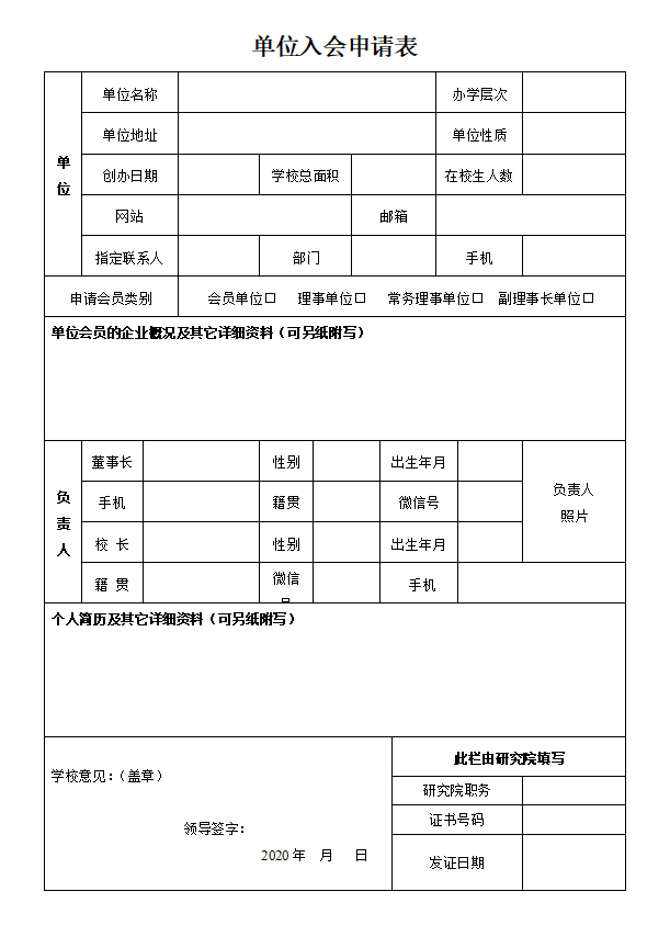 注(1)、申请单位会员的,单位校长或董事长将自动成为相应级别的个人会员。